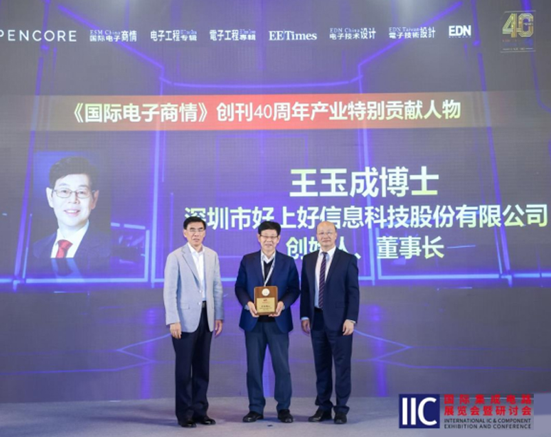 好上好信(xin)息董事長(zhang)王玉成(cheng)博士榮膺 “《國(guo)際(ji)電(dian)子(zi)商(shang)情》創刊40周年(nian)産(chan)業特别貢獻人(ren)物(wù)”